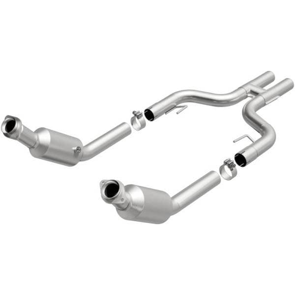 Keep the check engine light off with MagnaFlow HM Grade Federal/EPA Compliant Direct-Fit Catalytic Converter 24151. With features including free-flowing mandrel-bent tubing and highly corrosion resistant stainless steel construction, easily install this spun body converter yourself using the proper tools, no cutting or welding required. MagnaFlow's state-of-the-art metrology department uses the latest 3D scanning systems during research and development, so you can be confident that your new part will fit and function like the original equipment. By replicating the OE spun body design, the single laser fusion weld greatly reduces the possibility of a leak, and our compact, low-mass design also allows for greater thermal efficiency.This direct-fit catalytic converter is designed specifically for the 2005-2010 Ford Mustang and interchanges with OE part 4R3Z-5F250-C. Hardware is included to eliminate the hassle of working with corroded factory parts. This replacement part is designed to meet or exceed Federal emissions requirements set forth by the EPA, complying with legal standards for OBDII Federally registered vehicles with Federal/EPA Emission systems.