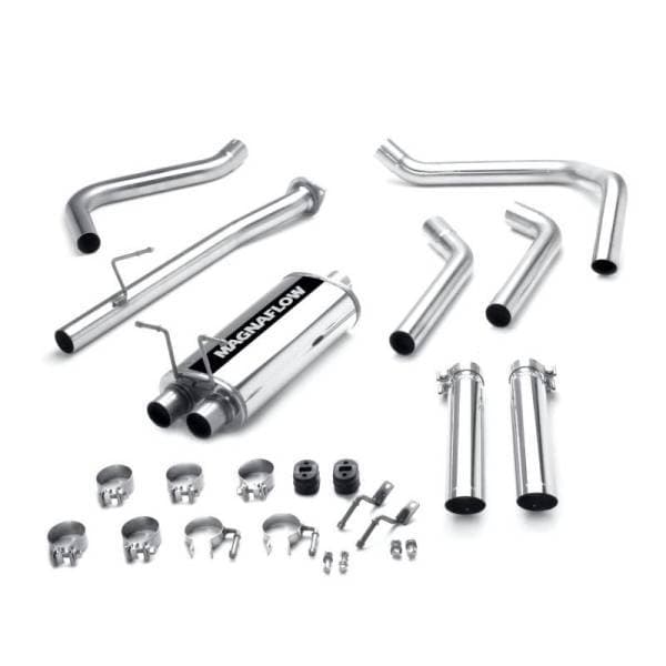The MagnaFlow Street Series 15796 brings out the personality of your Truck with our signature resonant, powerful engine tone and dyno-proven performance. Thanks to its fast-flowing, mandrel bent 2.5in. main piping and 1 Straight-Through mufflers ending in a Dual Split Rear exit with 3in. Polished Clamp-On-Single Wall-Angle Cut-Cut Edge tips, this Truck exhaust kit has the performance chops to match its sporty sound and appearance. Upgrade your ride to the next level with an exhaust that has the pipes to put other Truck’s to shame. With this system your vehicle will be producing Agressive exterior and Moderate interior sound levels while leaving other cars and trucks feeling envious at every stoplight. Exhaust kit 15796 features a cat-back layout that replaces your ride’s stock exhaust components from near the catalytic converter on back. Extensive 3D scanning during development has resulted in a direct-fit design that you can easily install yourself. 15796 is produced using CNC precision robotic manufacturing techniques and is backed by MagnaFlow’s 1-year limited finish warranty and limited lifetime construction warranty.