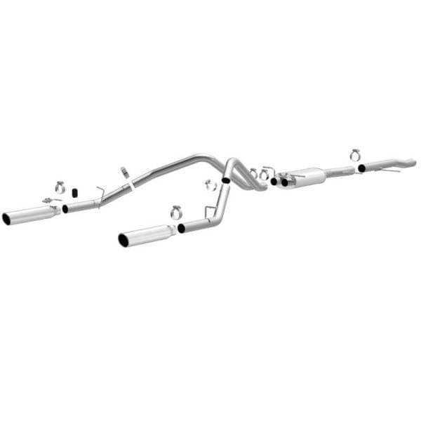 The MagnaFlow Street Series 15565 brings out the personality of your Truck with our signature resonant, powerful engine tone and dyno-proven performance. Thanks to its fast-flowing, mandrel bent 3in. main piping and 1 Straight-Through mufflers ending in a Dual Split Rear exit with 3.5in. Polished Clamp-On-Single Wall-Angle Cut-Rolled Edge tips, this Truck exhaust kit has the performance chops to match its sporty sound and appearance. Upgrade your ride to the next level with an exhaust that has the pipes to put other Truck’s to shame. With this system your vehicle will be producing Agressive exterior and Moderate interior sound levels while leaving other cars and trucks feeling envious at every stoplight. Exhaust kit 15565 features a cat-back layout that replaces your ride’s stock exhaust components from near the catalytic converter on back. Extensive 3D scanning during development has resulted in a direct-fit design that you can easily install yourself. 15565 is produced using CNC precision robotic manufacturing techniques and is backed by MagnaFlow’s 1-year limited finish warranty and limited lifetime construction warranty.