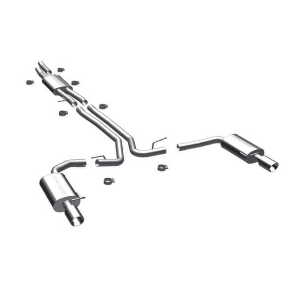 The MagnaFlow Ford Taurus Street Series 15769 brings out the personality of your 3.5L 2010-2014 Ford Taurus with our signature resonant, powerful engine tone and dyno-proven performance. Thanks to its fast-flowing, mandrel bent 2.5in. main piping and 3 Straight-Through mufflers ending in a Dual Split Rear exit with 4in. Polished Welded-Double Wall-Angle Cut-Folded Edge tips, this Ford Taurus exhaust kit has the performance chops to match its sporty sound and appearance. Upgrade your ride to the next level with an exhaust that has the pipes to put other Ford Taurus’s to shame. With this system your vehicle will be producing Moderate exterior and Mild interior sound levels while leaving other cars and trucks feeling envious at every stoplight. Exhaust kit 15769 features a cat-back layout that replaces your ride’s stock exhaust components from near the catalytic converter on back. Extensive 3D scanning during development has resulted in a direct-fit design that you can easily install yourself. 15769 is produced using CNC precision robotic manufacturing techniques and is backed by MagnaFlow’s 1-year limited finish warranty and limited lifetime construction warranty.