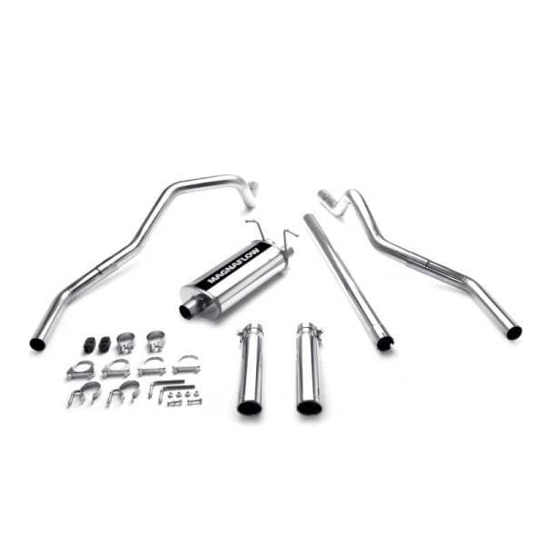 The MagnaFlow Ford Street Series 15749 brings out the personality of your 4.6L, 5.4L 1997-2004 Ford with our signature resonant, powerful engine tone and dyno-proven performance. Thanks to its fast-flowing, mandrel bent 2.5in. main piping and 1 Straight-Through mufflers ending in a Dual Split Rear exit with 3.5in. Polished Clamp-On-Single Wall-Angle Cut-Rolled Edge tips, this Ford exhaust kit has the performance chops to match its sporty sound and appearance. Upgrade your ride to the next level with an exhaust that has the pipes to put other Ford’s to shame. With this system your vehicle will be producing Agressive exterior and Moderate interior sound levels while leaving other cars and trucks feeling envious at every stoplight. Exhaust kit 15749 features a cat-back layout that replaces your ride’s stock exhaust components from near the catalytic converter on back. Extensive 3D scanning during development has resulted in a direct-fit design that you can easily install yourself. 15749 is produced using CNC precision robotic manufacturing techniques and is backed by MagnaFlow’s 1-year limited finish warranty and limited lifetime construction warranty.