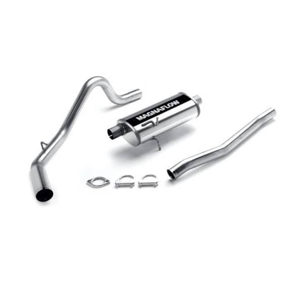 The MagnaFlow Street Series 15679 brings out the personality of your Truck with our signature resonant, powerful engine tone and dyno-proven performance. Thanks to its fast-flowing, mandrel bent 2.5in. main piping and 1 Straight-Through mufflers ending in a Single Passenger Side Rear exit with 3.5in. Polished Welded-Single Wall-Angle Cut-Cut Edge tips, this Truck exhaust kit has the performance chops to match its sporty sound and appearance. Upgrade your ride to the next level with an exhaust that has the pipes to put other Truck’s to shame. With this system your vehicle will be producing Moderate exterior and Mild interior sound levels while leaving other cars and trucks feeling envious at every stoplight. Exhaust kit 15679 features a cat-back layout that replaces your ride’s stock exhaust components from near the catalytic converter on back. Extensive 3D scanning during development has resulted in a direct-fit design that you can easily install yourself. 15679 is produced using CNC precision robotic manufacturing techniques and is backed by MagnaFlow’s 1-year limited finish warranty and limited lifetime construction warranty.