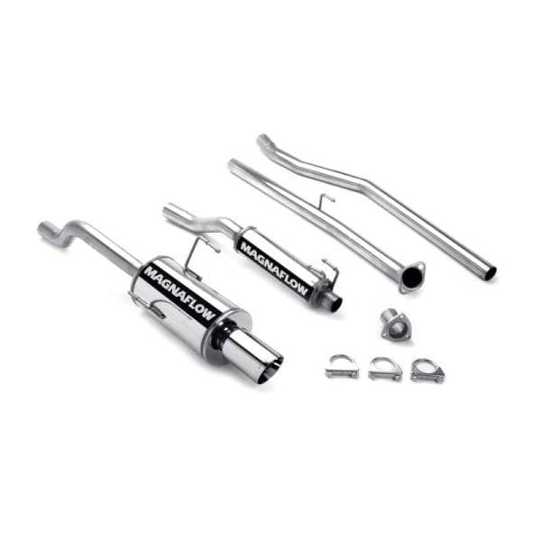 The MagnaFlow Honda Civic Street Series 15712 brings out the personality of your 1.7L 2001-2005 Honda Civic with our signature resonant, powerful engine tone and dyno-proven performance. Thanks to its fast-flowing, mandrel bent 2.25in. main piping and 2 Straight-Through mufflers ending in a Single Straight Passenger Side Rear exit with 4in. Polished Welded-Double Wall-Angle Cut-Folded Edge tips, this Honda Civic exhaust kit has the performance chops to match its sporty sound and appearance. Upgrade your ride to the next level with an exhaust that has the pipes to put other Honda Civic’s to shame. With this system your vehicle will be producing Moderate exterior and Mild interior sound levels while leaving other cars and trucks feeling envious at every stoplight. Exhaust kit 15712 features a cat-back layout that replaces your ride’s stock exhaust components from near the catalytic converter on back. Extensive 3D scanning during development has resulted in a direct-fit design that you can easily install yourself. 15712 is produced using CNC precision robotic manufacturing techniques and is backed by MagnaFlow’s 1-year limited finish warranty and limited lifetime construction warranty.