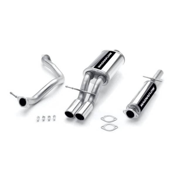 The MagnaFlow Volkswagen Touring Series 15648 brings enhanced engine sound and dyno-proven performance to your 1.8L, 2.0L 1998-2006 Volkswagen with a healthy helping of our deep, resonant signature exhaust note at Moderate exterior and Mild interior sound levels. Thanks to its durable, corrosion resistant stainless steel design, this Volkswagen exhaust system will handle whatever tarmac you decide to leave your mark on. This performance exhaust kit features a crossmember-back layout designed to replace your Volkswagen’s exhaust system from the crossmember on back. With its fast-flowing, mandrel bent 2.25in. main piping and 2 Straight-Through muffler ending in a Dual Straight Driver Side Rear exit with 3 Polished Welded-Single Wall-Angle Cut-Rolled Edge tips, your muscle car will be sounding as awesome as it looks. Extensive 3D scanning during development has resulted in a direct-fit design that you can easily install yourself. 15648 is produced using CNC precision robotic manufacturing techniques and is backed by MagnaFlow’s limited lifetime construction warranty.