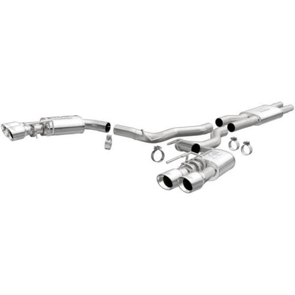 The MagnaFlow Ford Mustang Street Series 19370 brings out the personality of your 5.0L 2018-2022 Ford Mustang with our signature resonant, powerful engine tone and dyno-proven performance. Thanks to its fast-flowing, mandrel bent 3in. main piping and 3 Straight-Through mufflers ending in a Quad Split Rear exit with 4in. Polished Welded-Double Wall-Angle Cut-Folded Edge tips, this Ford Mustang exhaust kit has the performance chops to match its sporty sound and appearance. Upgrade your ride to the next level with an exhaust that has the pipes to put other Ford Mustang’s to shame. With this system your vehicle will be producing Moderate exterior and Mild interior sound levels while leaving other cars and trucks feeling envious at every stoplight. Exhaust kit 19370 features a cat-back layout that replaces your ride’s stock exhaust components from near the catalytic converter on back. Extensive 3D scanning during development has resulted in a direct-fit design that you can easily install yourself. 19370 is produced using CNC precision robotic manufacturing techniques and is backed by MagnaFlow’s 1-year limited finish warranty and limited lifetime construction warranty.