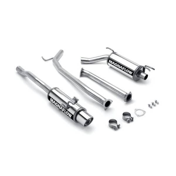 The MagnaFlow Honda Civic Street Series 16687 brings out the personality of your 1.8L, 2.0L 2006-2011 Honda Civic with our signature resonant, powerful engine tone and dyno-proven performance. Thanks to its fast-flowing, mandrel bent 2.25in. main piping and 2 Straight-Through mufflers ending in a Single Straight Passenger Side Rear exit with 4in. Polished Welded-Double Wall-Angle Cut-Rolled Edge-Resonated tips, this Honda Civic exhaust kit has the performance chops to match its sporty sound and appearance. Upgrade your ride to the next level with an exhaust that has the pipes to put other Honda Civic’s to shame. With this system your vehicle will be producing Moderate exterior and Mild interior sound levels while leaving other cars and trucks feeling envious at every stoplight. Exhaust kit 16687 features a cat-back layout that replaces your ride’s stock exhaust components from near the catalytic converter on back. Extensive 3D scanning during development has resulted in a direct-fit design that you can easily install yourself. 16687 is produced using CNC precision robotic manufacturing techniques and is backed by MagnaFlow’s 1-year limited finish warranty and limited lifetime construction warranty.