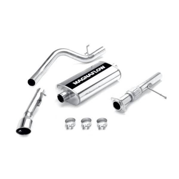 The MagnaFlow Street Series 16672 brings out the personality of your SUV with our signature resonant, powerful engine tone and dyno-proven performance. Thanks to its fast-flowing, mandrel bent 3in. main piping and 1 Straight-Through mufflers ending in a Single Passenger Side Rear exit with 3.5 x 5.5in. Polished Welded-Double Wall-Straight Cut-Rolled Edge tips, this SUV exhaust kit has the performance chops to match its sporty sound and appearance. Upgrade your ride to the next level with an exhaust that has the pipes to put other SUV’s to shame. With this system your vehicle will be producing Moderate exterior and Mild interior sound levels while leaving other cars and trucks feeling envious at every stoplight. Exhaust kit 16672 features a cat-back layout that replaces your ride’s stock exhaust components from near the catalytic converter on back. Extensive 3D scanning during development has resulted in a direct-fit design that you can easily install yourself. 16672 is produced using CNC precision robotic manufacturing techniques and is backed by MagnaFlow’s 1-year limited finish warranty and limited lifetime construction warranty.