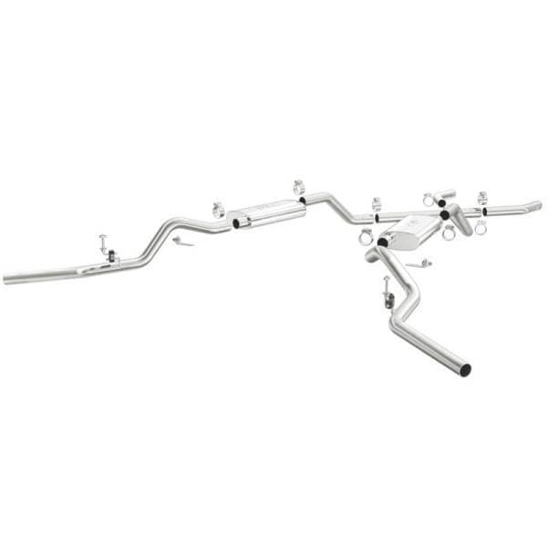 The MagnaFlow Chevrolet Street Series 16643 brings enhanced engine sound and dyno-proven performance to your 3.8L, 4.1L, 4.3L, 4.6L, 4.8L, 5.0L, 5.3L, 5.7L, 6.5L, 6.6L 1960-1972 Chevrolet with a healthy helping of our deep, resonant signature exhaust note at Agressive exterior and Moderate interior sound levels. Thanks to its durable, corrosion resistant stainless steel design, this Chevrolet exhaust system will handle whatever tarmac you decide to leave your mark on. This performance exhaust kit features a crossmember-back layout designed to replace your Chevrolet’s exhaust system from the crossmember on back. With its fast-flowing, mandrel bent 2.5in. main piping and 2 Straight-Through mufflers ending in a Dual Split Rear Behind Rear Tires exit that you can enhance with tips of your choosing, your muscle car will be sounding as awesome as it looks. Extensive 3D scanning during development has resulted in a direct-fit design that you can easily install yourself. 16643 is produced using CNC precision robotic manufacturing techniques and is backed by MagnaFlow’s limited lifetime construction warranty.