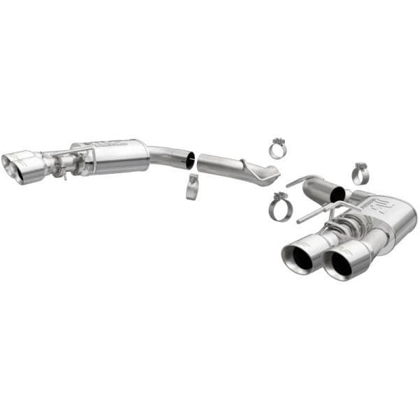 The MagnaFlow Ford Mustang Competition Series 19418 brings an aggressive, attention-grabbing edge to the deep resonant exhaust note we’re so well known for. This exhaust kit is designed to enhance your 5.0L 2018-2022 Ford Mustang with dyno-proven performance made possible thanks to fast-flowing mandrel bent 3in. main piping and 2 Straight-Through mufflers ending in a Quad Split Rear exit with 4in. Polished Welded-Double Wall-Angle Cut-Folded Edge tips featuring a sporty finish. The exhaust system’s axle-back layout replaces your ride’s exhaust system from near the rear axle on back. Exhaust system 19418 is engineered to make your vehicle’s engine produce Agressive exterior and Moderate interior sound levels, befitting its competition-oriented design. 19418’s direct-fit design makes installation a breeze thanks to the use of advanced 3D scanning techniques. This performance exhaust system is made of 100% durable and corrosion-resistant stainless steel and produced using CNC precision robotic manufacturing, all backed by MagnaFlow’s limited lifetime warranty. Please check to ensure compliance with local noise regulations.