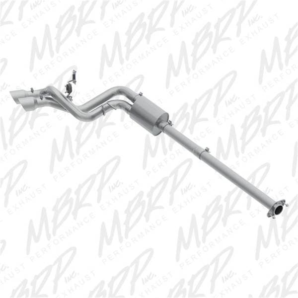 Built from heavy duty aluminized steel our Installer Series performance exhaust systems offer a value price without compromising on the quality built into every component. While the seams are a major point of rust through with some budget systems our fully sealed tubing adds years to your system. Constructed to the same specifications as our top of the line Pro Series we back this line with an industry leading 3 Year Warranty. Built To Perform - MBRP's performance exhaust systems are built to perform. Designed to maximize exhaust flow and minimize exhaust temperatures your truck will use less gas, last longer and perform better. Every system we sell has been built to the most exacting standards in the industry. Dyno Proven - Your MBRP performance gas exhaust system has undergone countless hours on our in-house Mustang 1100 AWD-SE Chassis Dynomometer, hundreds of miles on road and track and numerous tweaks and modifications to get the most out of your truck. From the vehicle specific muffler design to the fully mandrel bent tubing to minimal bend degree angles, your MBRP performance system gets exhaust out fast. An MBRP performance exhaust system is the starting point to getting the most from cold air intakes, programmers, modules and downloaders. Easy Installation - MBRP systems are as much fun to install as to drive with on your truck. Bolt-on, no weld design makes installation a no hassle one and a half to two hour project. Everything is direct fit to the OEM hangers and you get all the clamps and parts you will need. Sound And Style - Performance is one thing but at MBRP we believe that appearance and sound are just as important. Every MBRP performance exhaust system has been specifically tuned to get the optimal sound from your pickup. With our stamped logo on the tip and our unmistakable styling, there's no question that you have the hottest performance exhaust on the road - MBRP.
