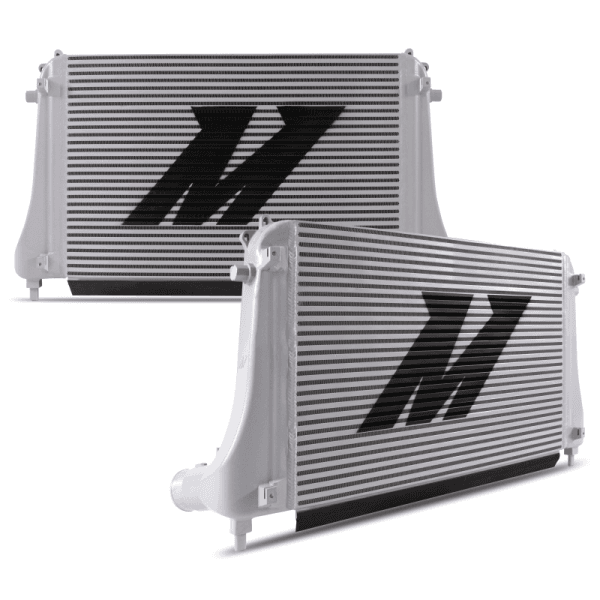 The mantra behind the grandfather of all hot-hatchbacks has long since been that big things come in small packages. Now on its 7th generation, the 2015+ Golf TSI/GTI/R's and its intercooling system are about to receive a much-needed overhaul with the Mishimoto Performance Intercooler Kit. The stock system can be best described as the meat in an intercooler sandwich. It's no wonder with it placed directly between the radiator and AC condenser that this tube-and-fin constructed intercooler has trouble keeping up. Where this lighter core coupled with plastic end tanks might be suited for mass production and tame street driving, it will struggle to keep your intake air temperatures down under more intense driving, especially after the boost is turned up. The Mishimoto 2015+ Volkswagen MK7 Golf TSI/GTI/R Performance Intercooler, armed with an arsenal of cooling technology, takes the place of the stock intercooler. Our engineers were able to squeeze in a larger core, increasing the overall volume by 89% over stock and bumping up the external fin surface area by 162%. On top of the larger core, our all-aluminum, TIG-welded intercooler features a more robust bar-and-plate construction for better heat dissipation characteristics. In addition, the cast aluminum end tanks are integrated with airflow diverters to ensure use of the full core. When combined, our innovations for the MK7 intercooling system yielded max power gains of 14 whp and 12 wtq on the stock tuning. In addition, our charged air cooler dropped intercooler outlet temperatures by 23 F over stock equipment. Our 2015+ Volkswagen MK7 Golf TSI/GTI/R Performance Intercooler also includes a pair of CNC-machined aluminum mounting brackets and the Mishimoto Lifetime Warranty for a precise and worry-free installation.
