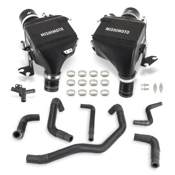 That means your turbos don’t have to work as hard, and the boost pressure they generate isn’t wasted shoving air through a restrictive intercooler. All those improvements result in dyno-proven charge air temperatures that are up to 23-degrees cooler than stock. Colder intake charge temps mean your VR30 can make the most of every drop of fuel, and we were able to produce power gains of up to 8 HP and 12 lb.-ft of torque without a retune. We also know that high boost pressures require strong components, which is why we constructed our intercoolers with cast aluminum end tanks. This design eliminates potential leak points and stress concentrations that welded tanks may suffer from. The included ancillary hoses and couplers ensure coolant and air flow reliably through the intercoolers, and the included engine cover spacers let you keep your extra cooling hidden for a stealth approach. Like all Mishimoto products, these performance intercoolers for the 2016+ Q50/Q60 3.0T are backed by our Mishimoto Lifetime Warranty.